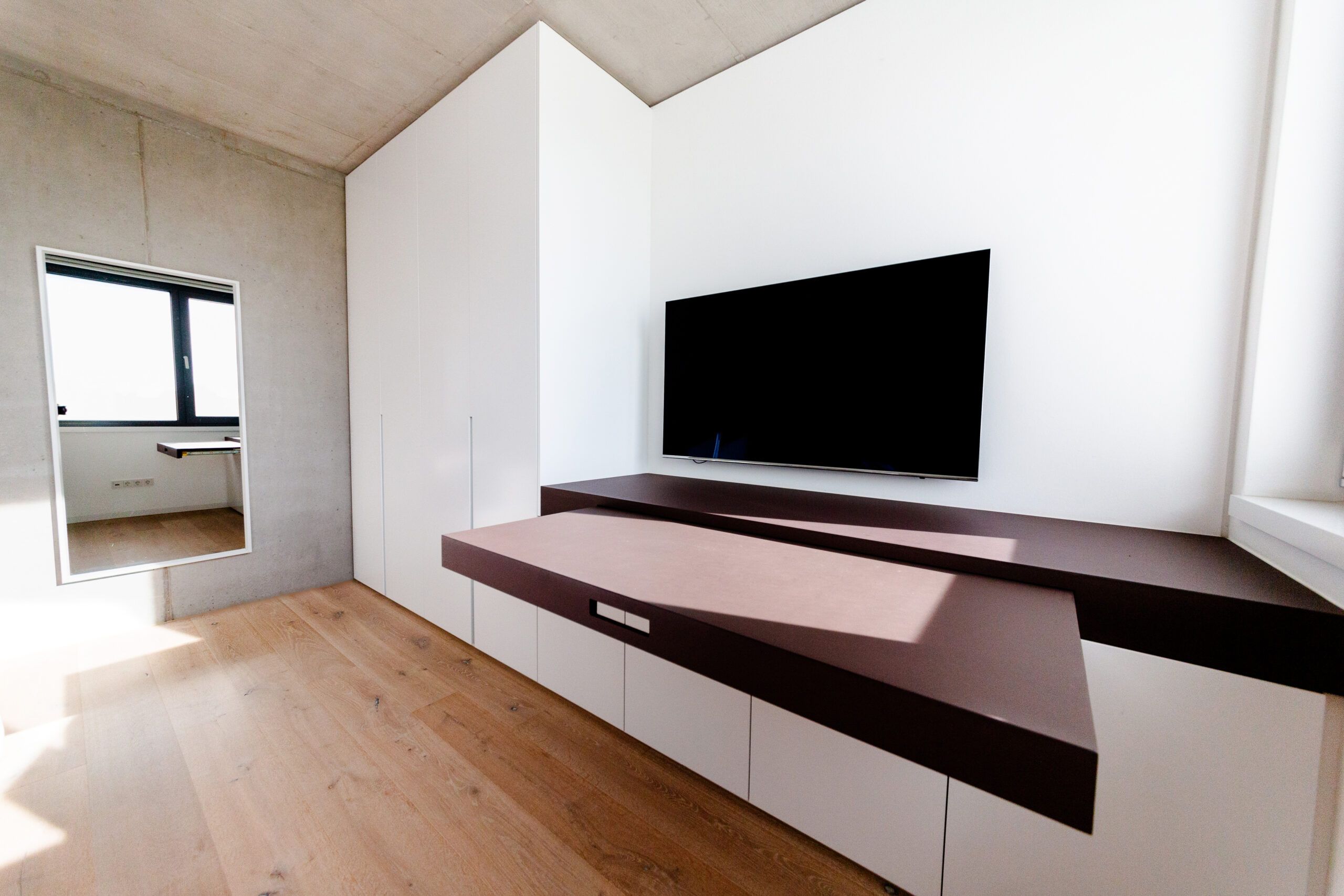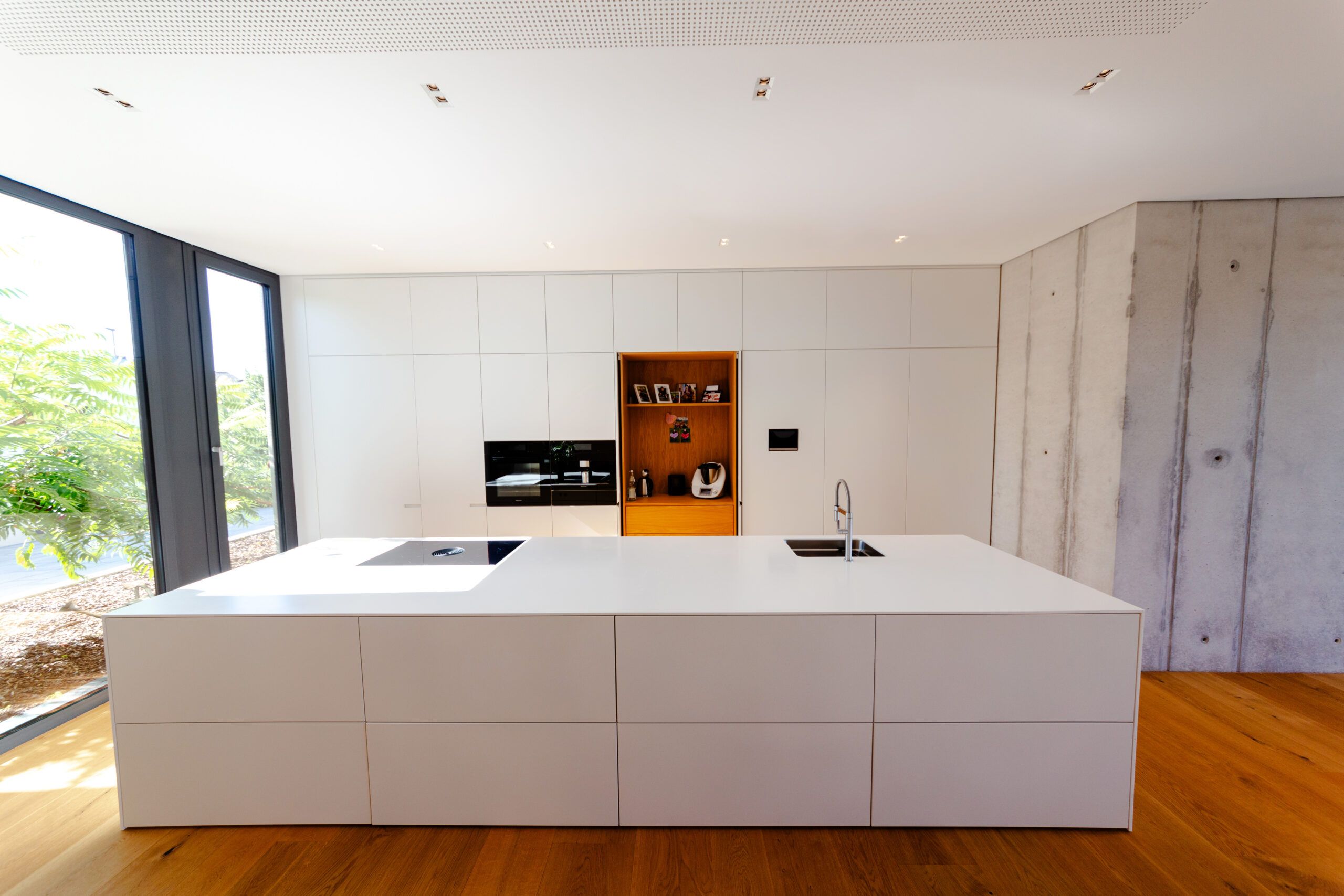 Großzügige Räume und fein abgestimmte Materialien verleihen diesem Zuhause eine natürliche Klarheit. In der Küche treffen Funktionalität und Ästhetik aufeinander – ein Ort für gemeinsames Kochen und Ankommen. Helle Farben und dezente Formen lassen das Bad offen und einladend wirken, während flächenbündige Türen und maßgefertigte Einbauten das klare Gestaltungskonzept bis in Ankleide und Eingangsbereich fortsetzen. So entsteht ein zeitloses Zuhause, das zum Wohlfühlen einlädt.