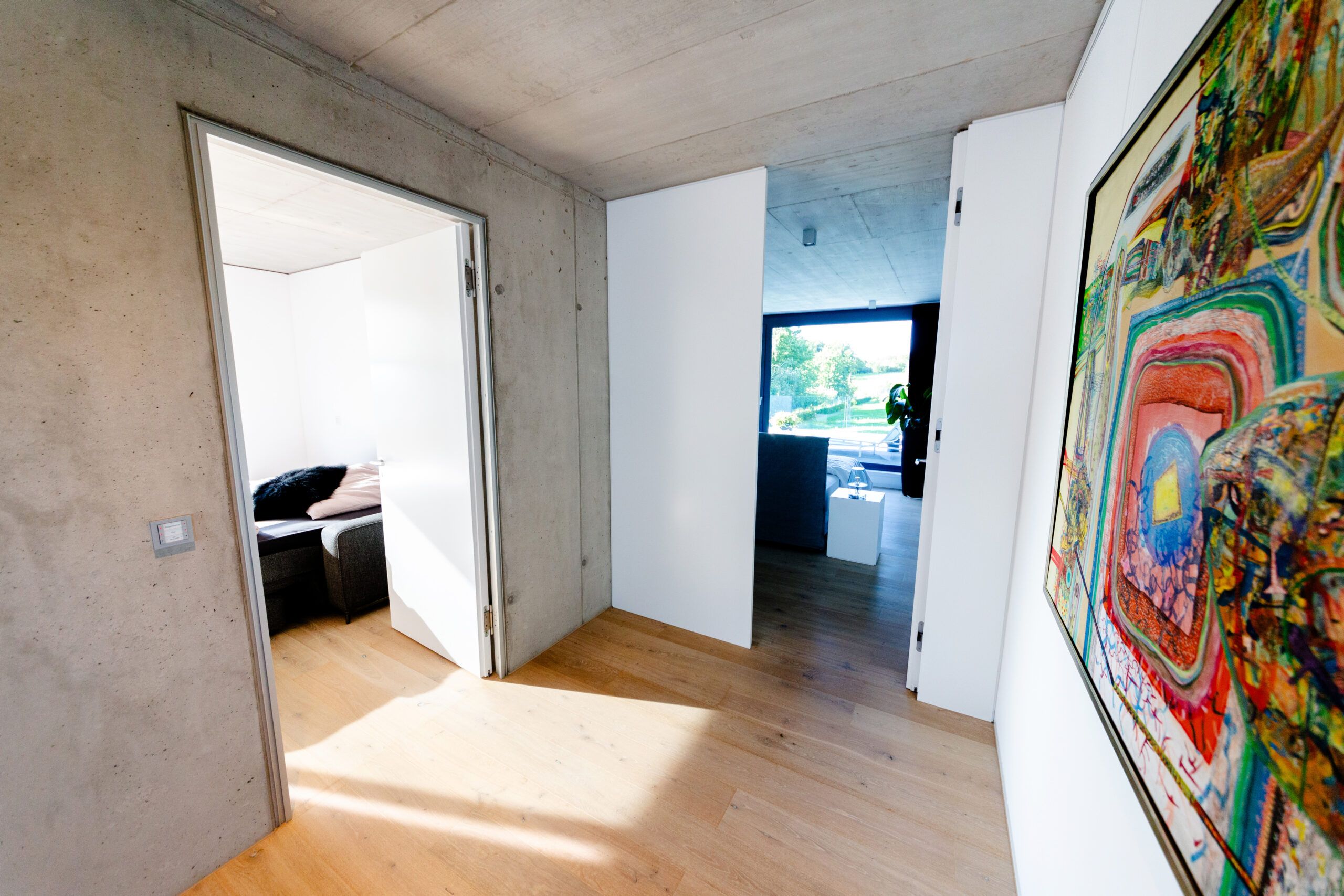 Lichtdurchflutete Räume, klare Linien und Alltagstauglichkeit im Fokus – in diesem Einfamilienhaus trifft minimalistisches Design auf wohnliche Wärme. Flächenbündige Türen, eine schwebende Kragarmtreppe und maßgefertigte Möbel fügen sich dezent ins Gesamtbild ein. Vom Kinderzimmer bis zur Küche sorgen reduzierte Materialien, clevere Funktionen und feine Details für eine ruhige Atmosphäre.